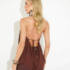 A blusa Luara é uma peça moderna e ousada, confeccionada em tecido crepe musseline com um design elegante e sofisticado. Ela possui um corte frente única com decote profundo em “V”, preso por um pequeno detalhe metálico dourado no centro do busto. A blusa é aberta na parte frontal, deixando o abdômen à mostra, e tem um acabamento que se estende para os lados, criando uma leve assimetria. O detalhe em gola alta adiciona um toque chique e estilizado à peça, contrastando com a sensualidade do recorte frontal.
