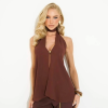 A blusa Luara é uma peça moderna e ousada, confeccionada em tecido crepe musseline com um design elegante e sofisticado. Ela possui um corte frente única com decote profundo em “V”, preso por um pequeno detalhe metálico dourado no centro do busto. A blusa é aberta na parte frontal, deixando o abdômen à mostra, e tem um acabamento que se estende para os lados, criando uma leve assimetria. O detalhe em gola alta adiciona um toque chique e estilizado à peça, contrastando com a sensualidade do recorte frontal.