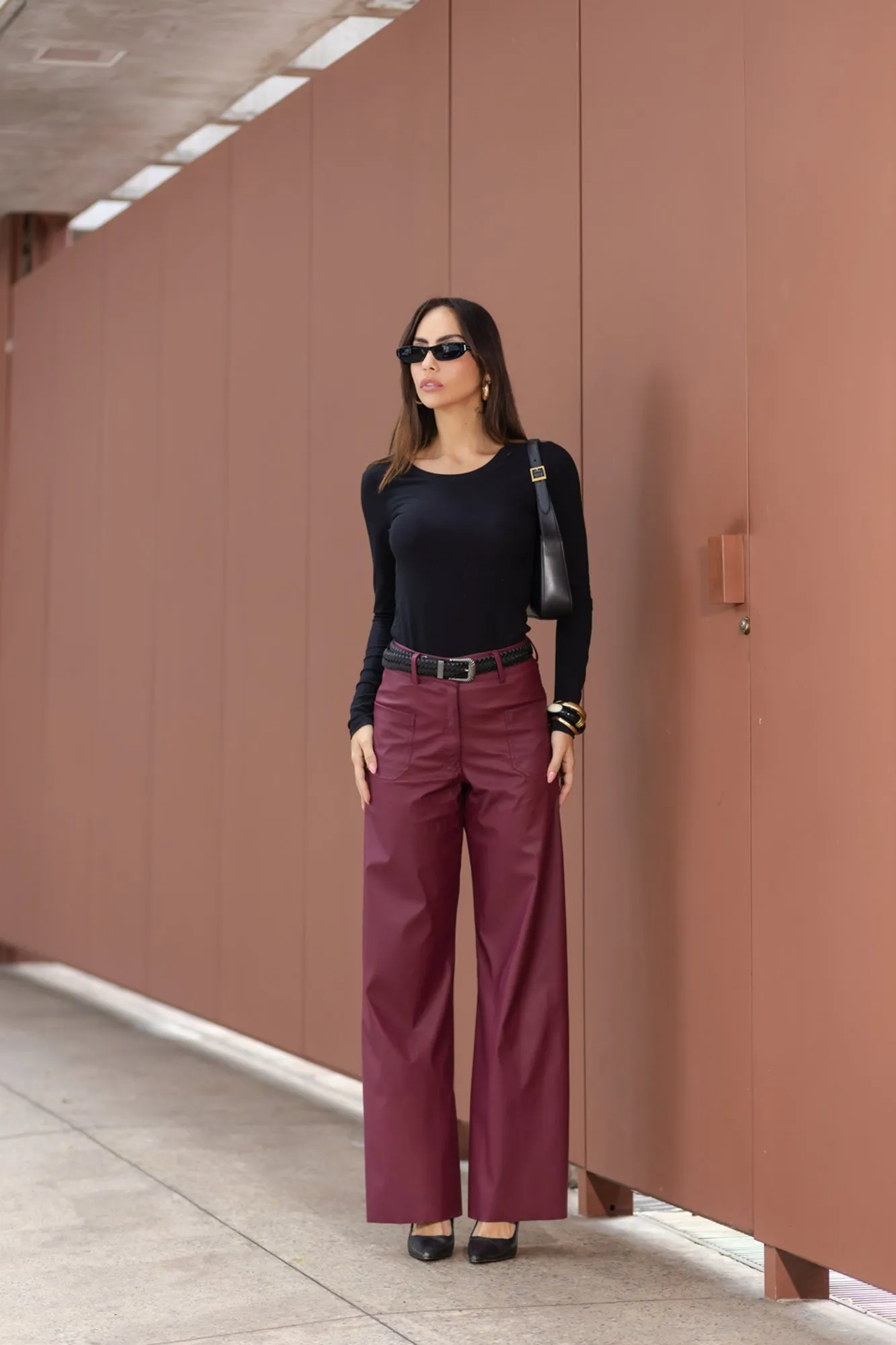 Descrição do produto: Calça em couro Fake, possui fechamento por zíper e Botão. Possui bolso frontal. Não possui forro.