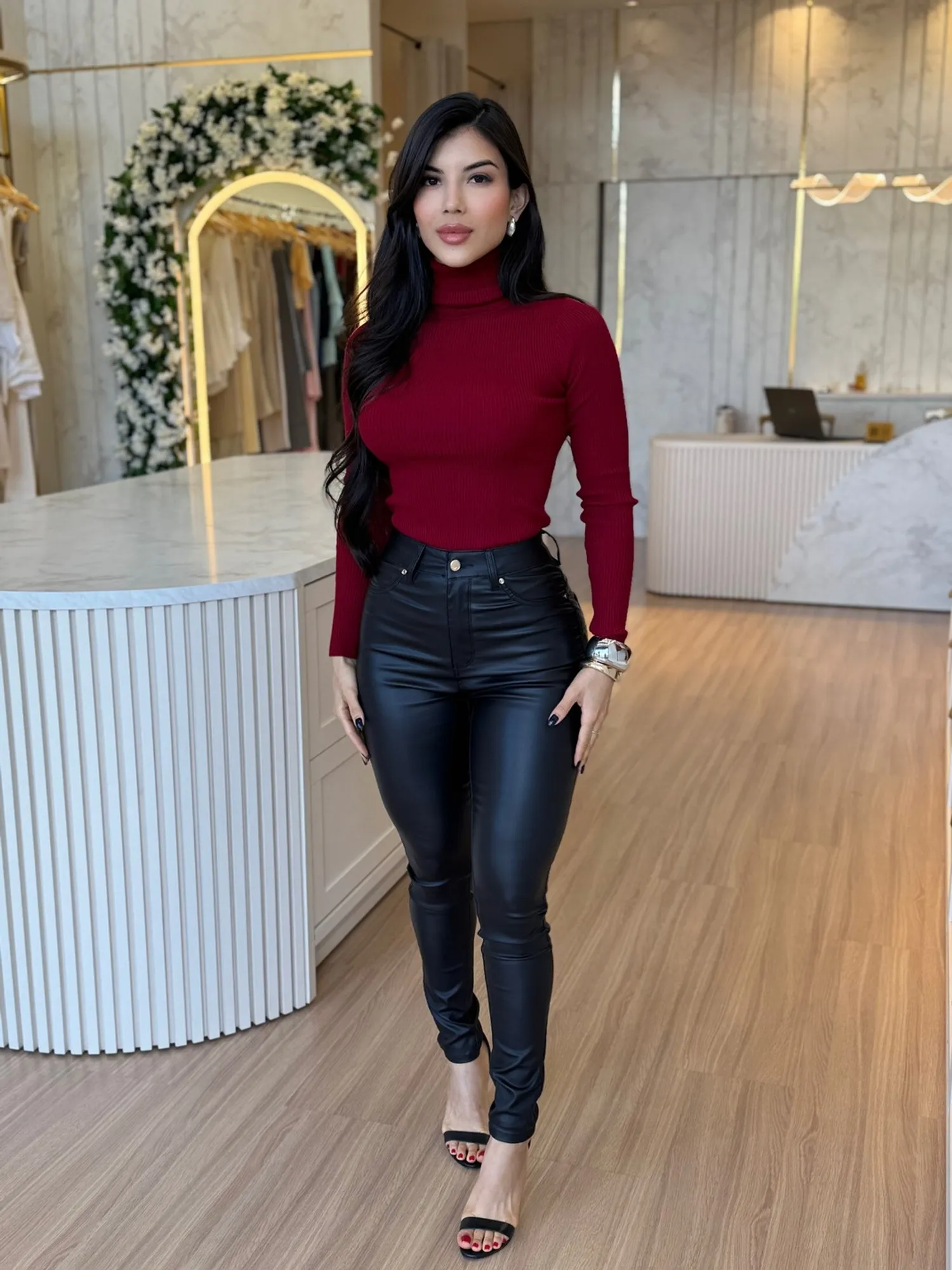 Resinada em PU Modelagem justa que valoriza as curvas com muito estilo! A Calça Helo traz um acabamento sofisticado em couro sintético (PU) com toque macio e caimento impecável. Ideal para compor looks poderosos do dia à noite. Cores disponíveis: Verde, Preto e Vinho.